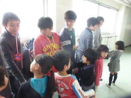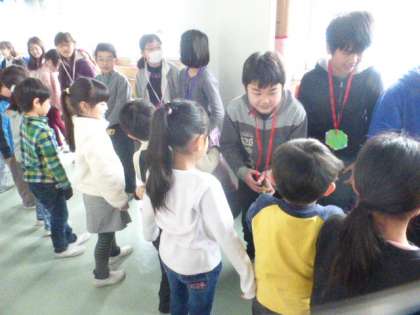 若小伝統のプレゼント「六角メダル」をかけてもらい、