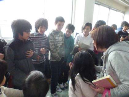 6年生の教室前にはエスコート役の1年生がお迎えに来てくれました。
