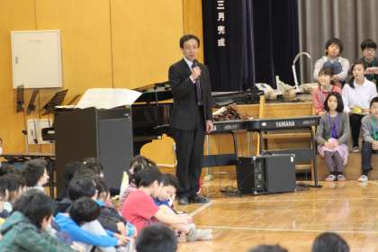 代表委員さんのあいさつに続いて、校長先生の名代として登場した副校長先生のお話です。