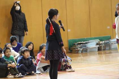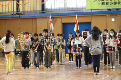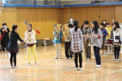 6年生の指揮者から5年生の指揮者へ、伝統の指揮杖が引き継がれます。