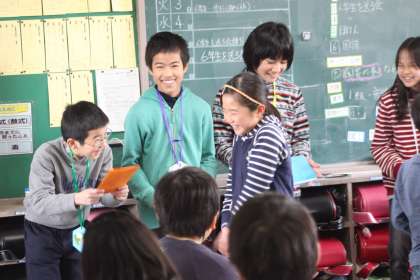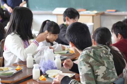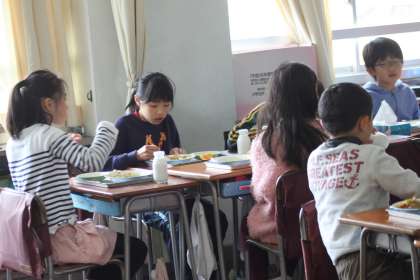 5年生の班長代理が立派に取り仕切り、給食の準備、後片付け、