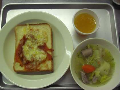 献立名:ピザトースト、牛乳、ポトフ、みかんゼリー