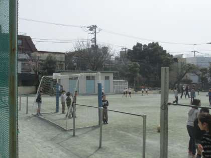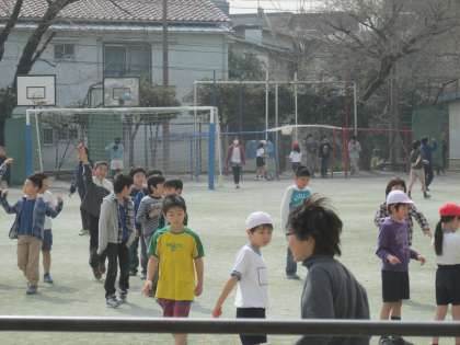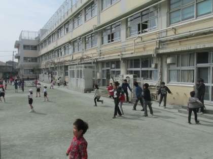 休み時間の校庭にはたくさんの子たちが出て元気いっぱいに遊んでいました。