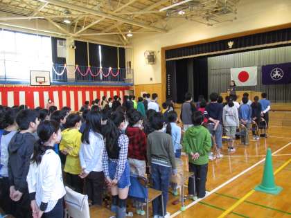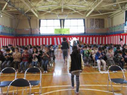 卒業式に向けて4、5、6年生が合同練習をしました。
