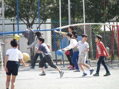 子どもたちも校庭に出て元気いっぱいに遊んでいます。