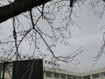 校庭の桜のつぼみをよく見てみると・・・