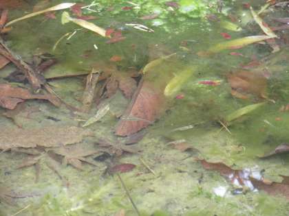 校庭の100周年記念池にはメダカがすいすいと泳いでいます。