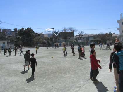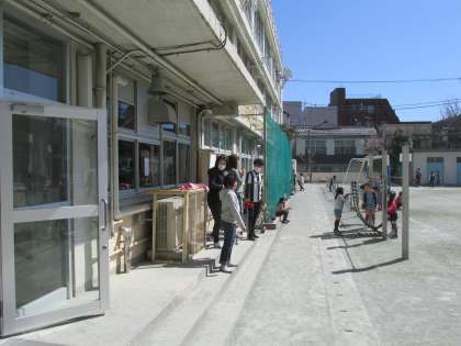 3学期最終日の中休みは、真夏のような日差しが照りつけていました。