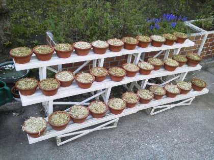 5年生が大切に育てているサギソウは、北門の横に置かれています。