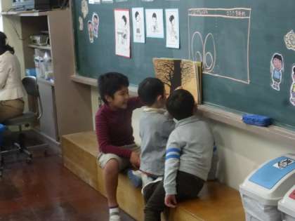 かわいい1年生と頼もしい6年生、とてもよいコンビですね!