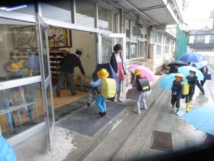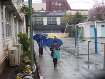 雨の中でもみんな元気っぱいに登校してきてくれています。