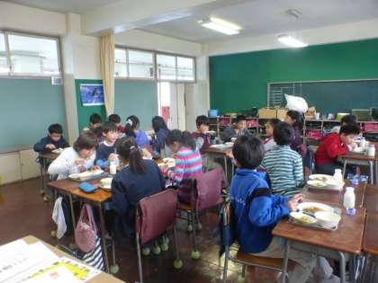 昨年度とは大きくシステムの変わった若小ですが、今日も美味しい給食にみんな大喜びです。