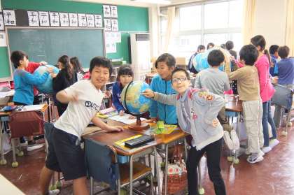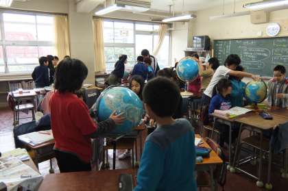 大陸の名前や位置、海洋の名前、そして日本の位置。