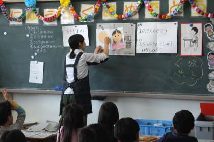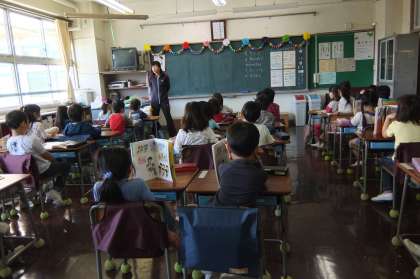 よい姿勢で教科書をもったり、先生の方をしっかり向いてお話を聞けています。