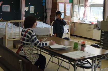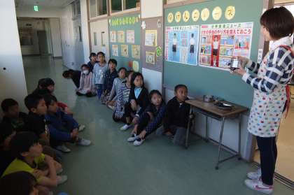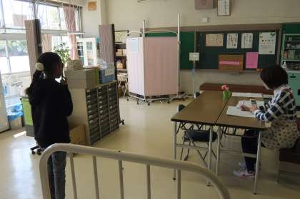保健室の先生をよく聞いて、みんな真剣そのもの。