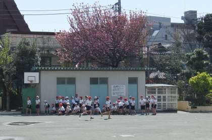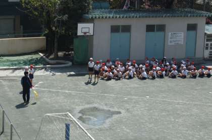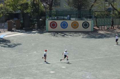 今日の校庭では4年生が50メートル走に取り組んでいました。