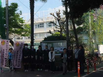 学び舎合同のあいさつ運動も3日目を迎えました。