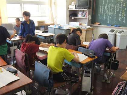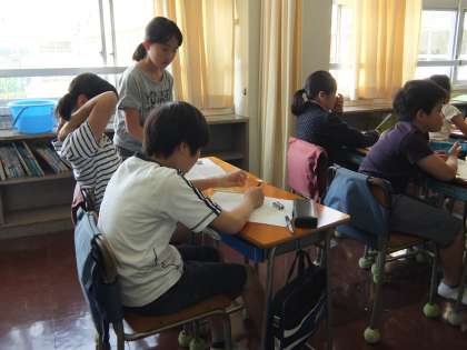 5年生は前日に行った遠足についての作文を書くところです。