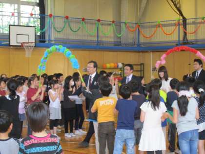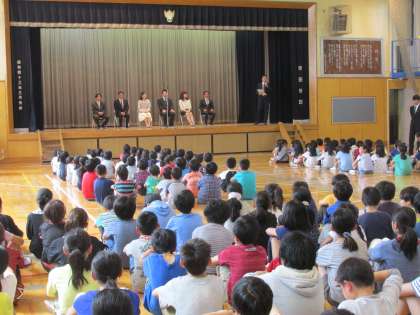 子ども達の温かい拍手に迎えられ、先生、主事さん方が入場します。