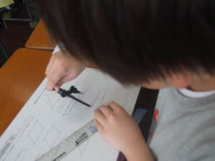 定規、コンパス、分度器の3点セットを駆使して、合同な三角形が上手に描けました。