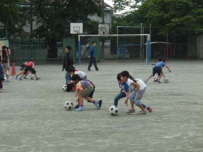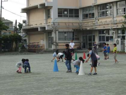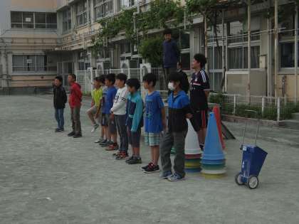 蹴ったり、投げたりしてはいけないルールで、みんな頑張っていました。