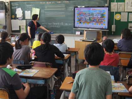 5、6年生で英語の講師の先生をお迎えして外国語活動を行いました。