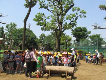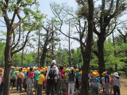 とてもよいお天気の下、みんなしっかり歩いて公園に向かいます。
