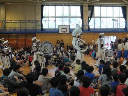 会場の体育館が熱気に包まれる中、駒沢大学吹奏楽部 ダッキーズの皆さんが堂々の入場です。