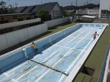 今日は若小の業者の方が見えて、プールの清掃をしてくれました。