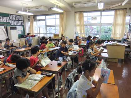 若小の火曜日と金曜日は、朝読書から始まります。