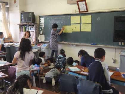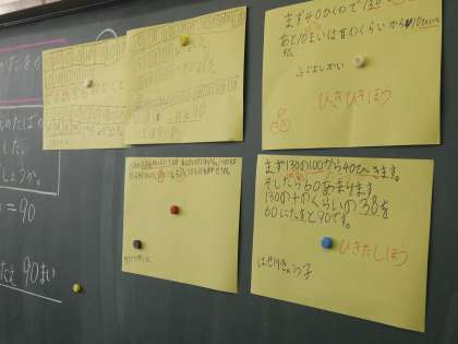 お友達の考えを観て聴いて、ノートに記録を取ります。