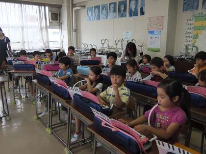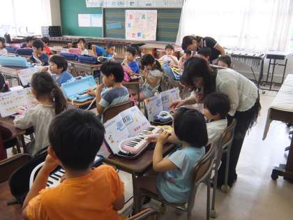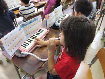 1年生が音楽の時間に鍵盤ハーモニカの練習をしました。