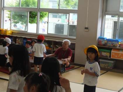すっかりおなじみになっている地域の方が今日も若小に来てくれて、子どもたちに遊びを教えてくれました。