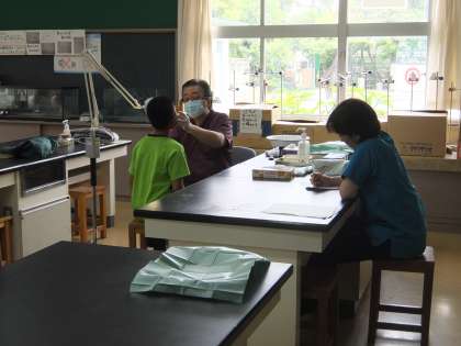 校医さんが二人やってきて子どもたちの歯の様子を診察しています。