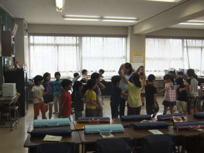 2年生が音楽の時間に、楽しく「ロンドン橋」の歌を歌っていました。