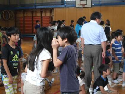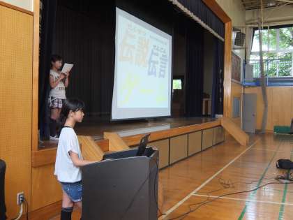 クラス全員での伝言ゲームは答え合わせの場面が一番盛り上がりました。