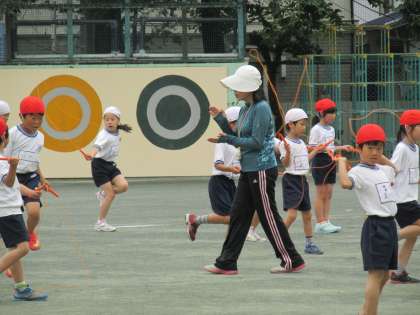 恒例になっているリズムなわとびがますます上達し、先生もニッコリ。