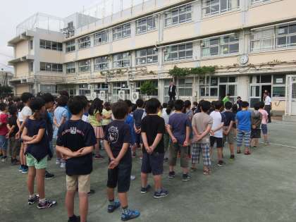 校庭に集まった全校児童はとても引き締まった表情をしています。