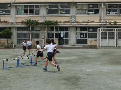 さすがは5年生、逞しい走りで校庭をかけぬけていきます。