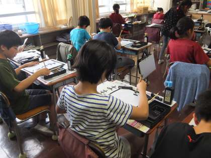 じっくりとお手本を観ながら半紙に向かいました。
