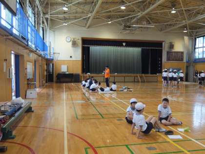 体育館と校庭に分かれてみんな体力の限りを尽くします。