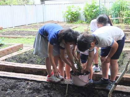 泥の感触を楽しむかのようにしっかりと植えました。