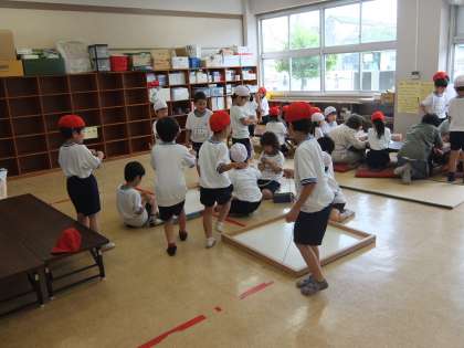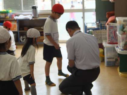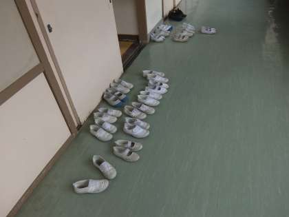 きれいに上履きをそろえて会場のBOP室に子どもたちがたくさんやってきました。