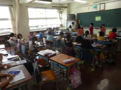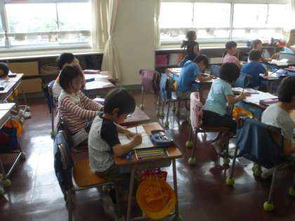 1年生は国語の時間にひらがなの書き取りをしています。