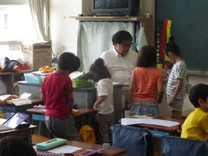 書けた子から先生に見せに行きますが、先生も思わずにっこり。