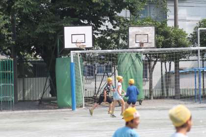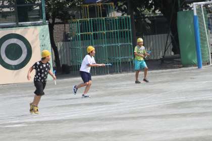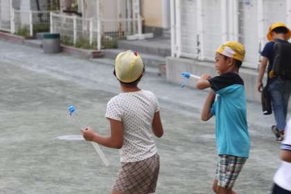 体がぬれてもよいように、水着に着替えて、とても盛大な実験となりました。
