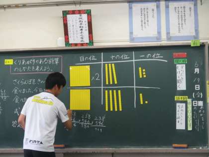 3年生は算数で、大きな数のたし算についての学習をしました。