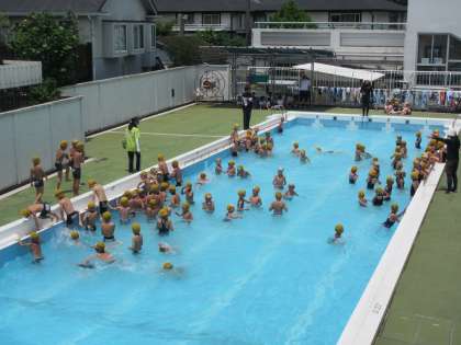プールの時間に合わせるかのように太陽が出て、子どもたちは気持ちのよい水の感触を楽しむことができました。