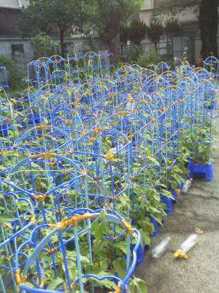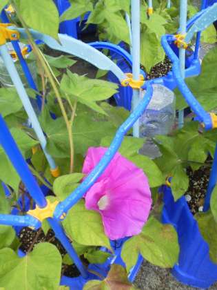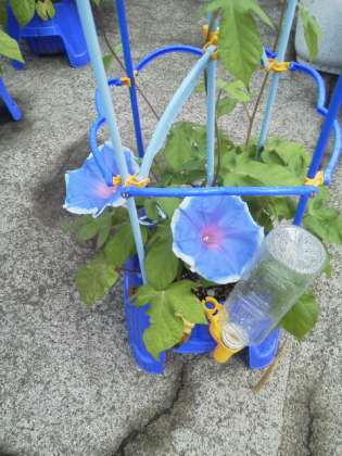 1年生がせっせと育てているアサガオに大輪の花がついています。