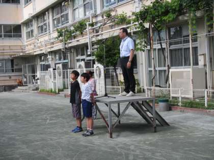 月曜恒例の児童朝会がありました。